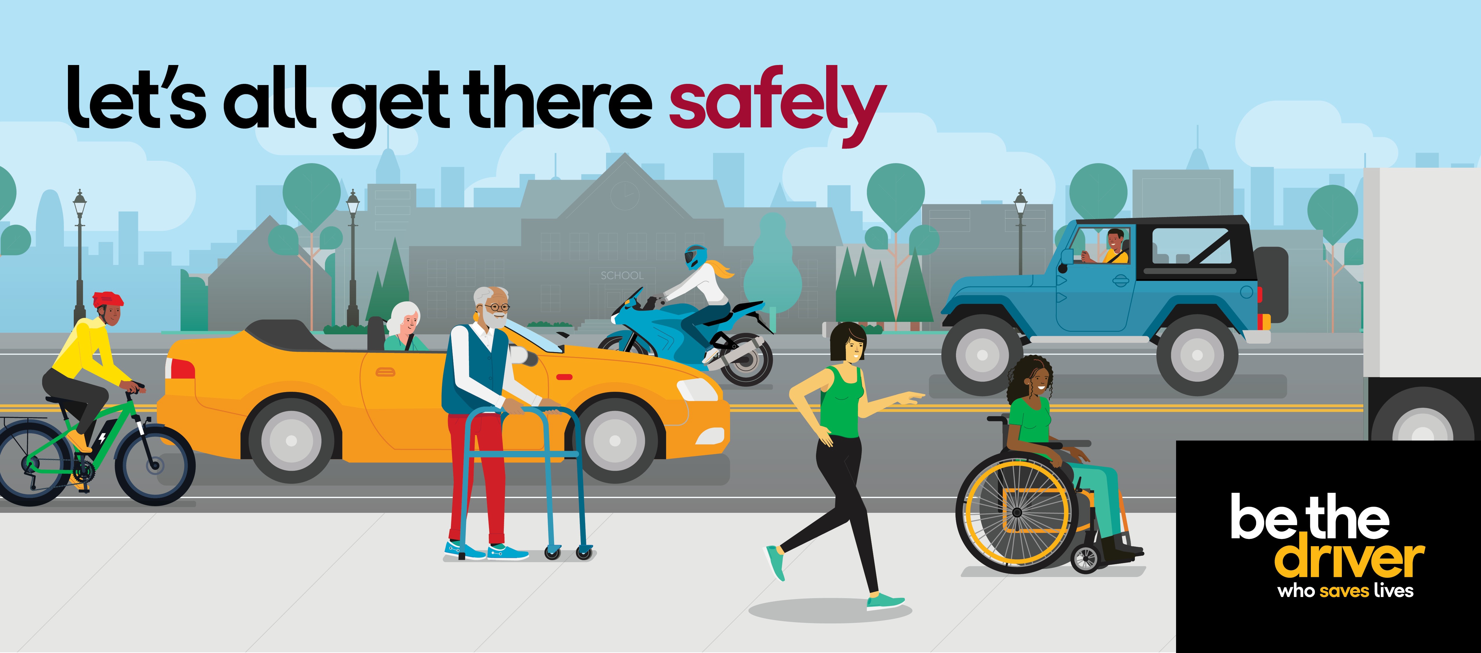 Drivers, bicyclists, and pedestrians all have a responsibility to share the road. Be the SHARE THE ROAD Driver reminds all road users that no matter how you travel to your destination, we should work together to get there safely. This includes stopping for pedestrians, giving bicyclists 3 feet of space when passing, and using crosswalks or intersections.